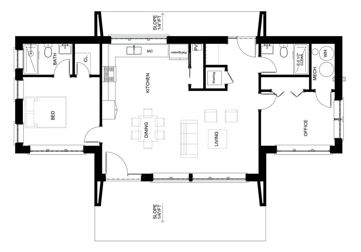 The H2|10 is a thoughtfully designed Colorado prefab home perfect for first-time home buyers seeking an affordable, sustainable, and comfortable living space. Built to Passive House certifiable standards, this model combines energy efficiency with stylish, modern design, making it an ideal choice for eco-conscious buyers. With its compact yet spacious layout, the H2|10 offers an open-concept floor plan that maximizes every square foot, providing ample natural light and reducing utility costs.