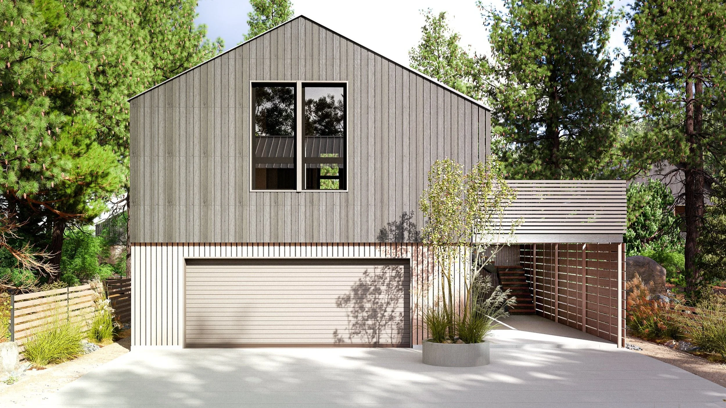 This Scandinavian design offers a solution to maintaining the privacy of a 2 bed 1 bath upper level living area with a 1 bed 1 bath Accessory Dwelling Unit (ADU) floorplan below, and plenty of garage space for all of your mountain adventure gear PLUS an additional carport for owner and guest parking. The large deck on the upper level is perfect for taking in the mountain views.